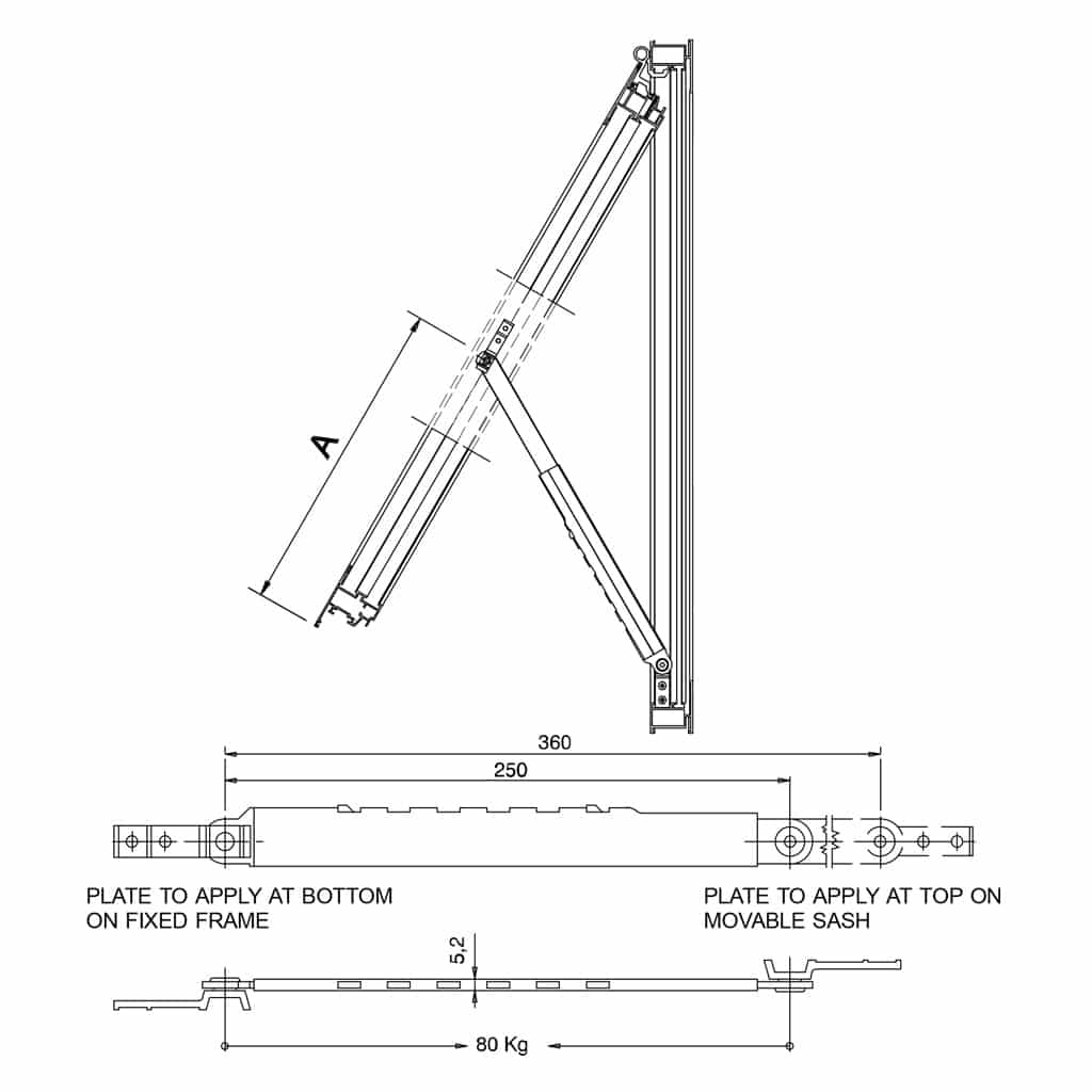 Giesse telescopic laser restrictors are designed to hold open and restrict top-hung windows. The restrictor arms are made using high-grade materials, to ensure stability when restricting and holding a window sash weighing up to 80 kg.