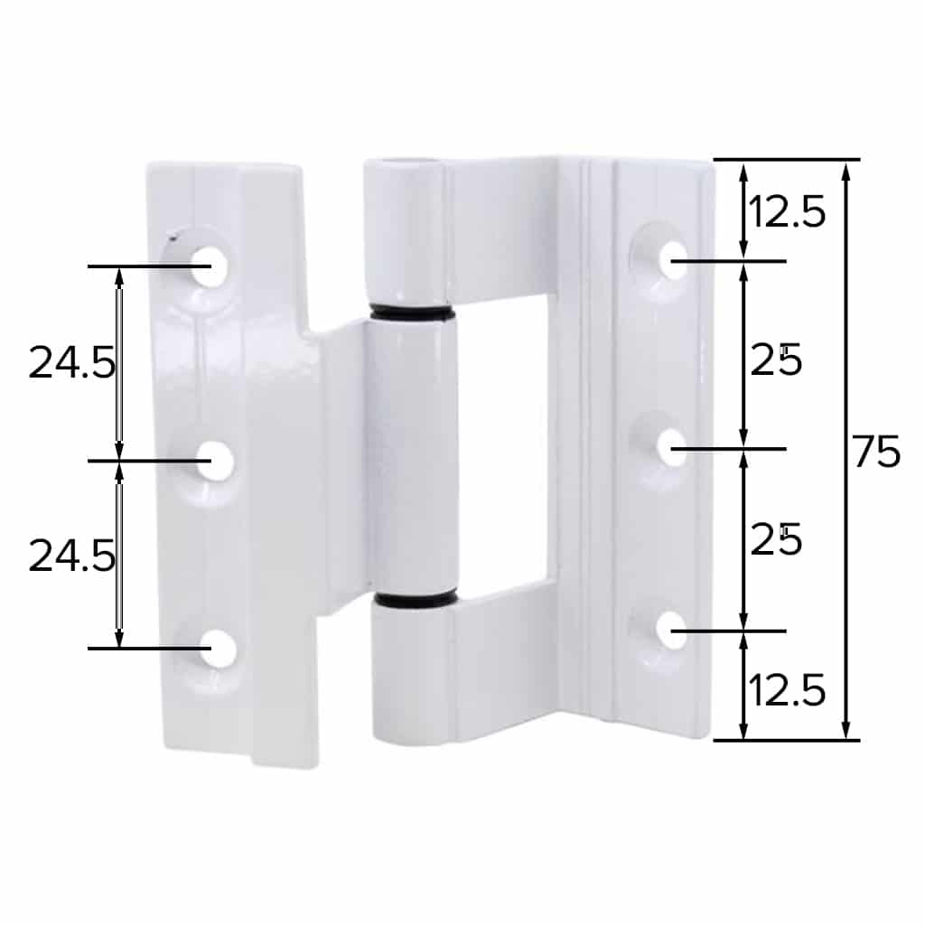 RW casement window hinge with 3 knuckle ‘universal’ hinges. Stainless steel pins and nylon washers.