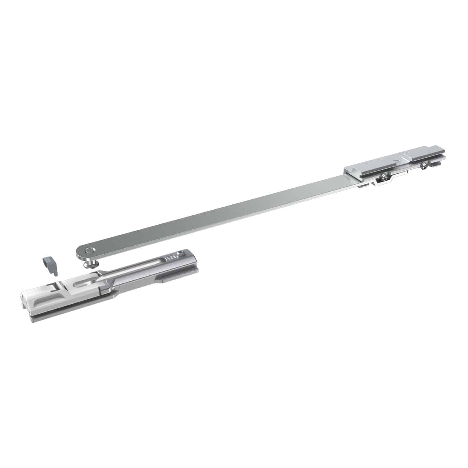 The Siegenia LM 5200 tilt only restrictor stay fits the top side of a tilt-only aluminium window measuring up to 1000mm wide. For wider windows that require extra support, it is recommended to add a second restrictor.